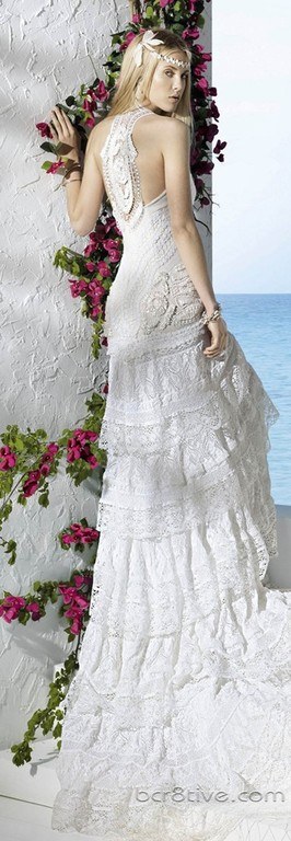 Para las que tienen el espíritu hippy pero quieren un estilo más elegante. Se puede llevar también al vestido de novia, llenando de encaje la parte de los hombros y cubriendo el corpiño. Este estilo enamorará a más de una.