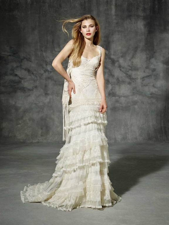 La colección de vestidos de novia de la firma YolanCris, no podía olvidarse de los vestidos de novia boho chic y vestidos de novia boho folk, con tendencia moda años 70, inspirada en el movimiento Hippy donde el crochet y los encajes son los tejidos que marcan la línea, tejidos que nos permitan movernos libremente, telas finas y naturales, hacen de YolanCris una firma de referencia en cuanto a vestidos de novia hippy se refiere.