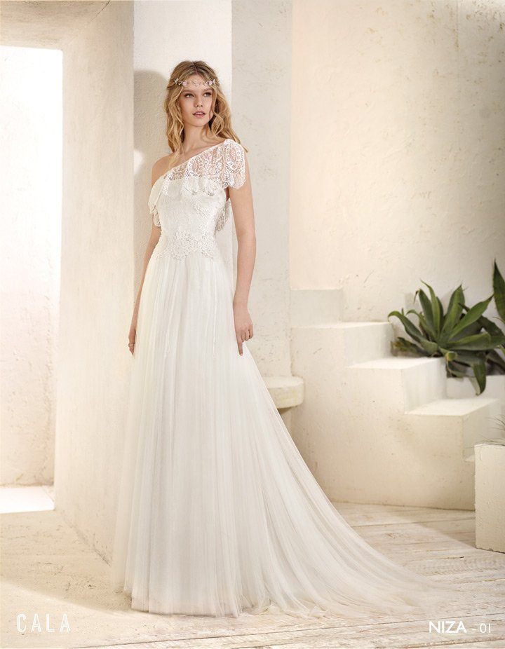 Un precioso modelo provenzal, el modelo Lauren, un vestido de novia pensado para una ceremonia más informal. Un bonito vestido confeccionado con un elegante encaje, se ajusta perfectamente a las curvas de nuestro cuerpo, haciendo de este modelo un vestido muy romántico y femenino. Los cortes en el vestido para intercalar las distintas texturas y tejidos, hacen de este vestido un ejemplo puro de lo que puede ser un vestido ibicenco y chic.