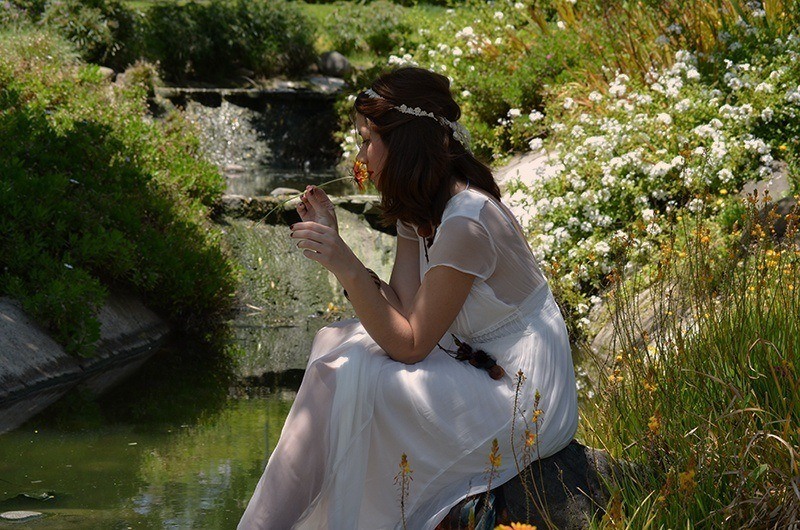 LOS COMPLEMENTOS. Aquí juegan un papel casi protagonista porque al llevar un look monocromático, blanco, la única forma de dar un toque especial es con los complementos. Nos encanta usar para este tipo de looks complementos de madera o con un toque étnico por que creo que casan muy bien con la esencia natural y bohemia de estas bodas. Unas sandalias blancas de tiras o si quieres llevar algo de altura unas cuñas esparteras van de lujo con este tipo de vestuario.