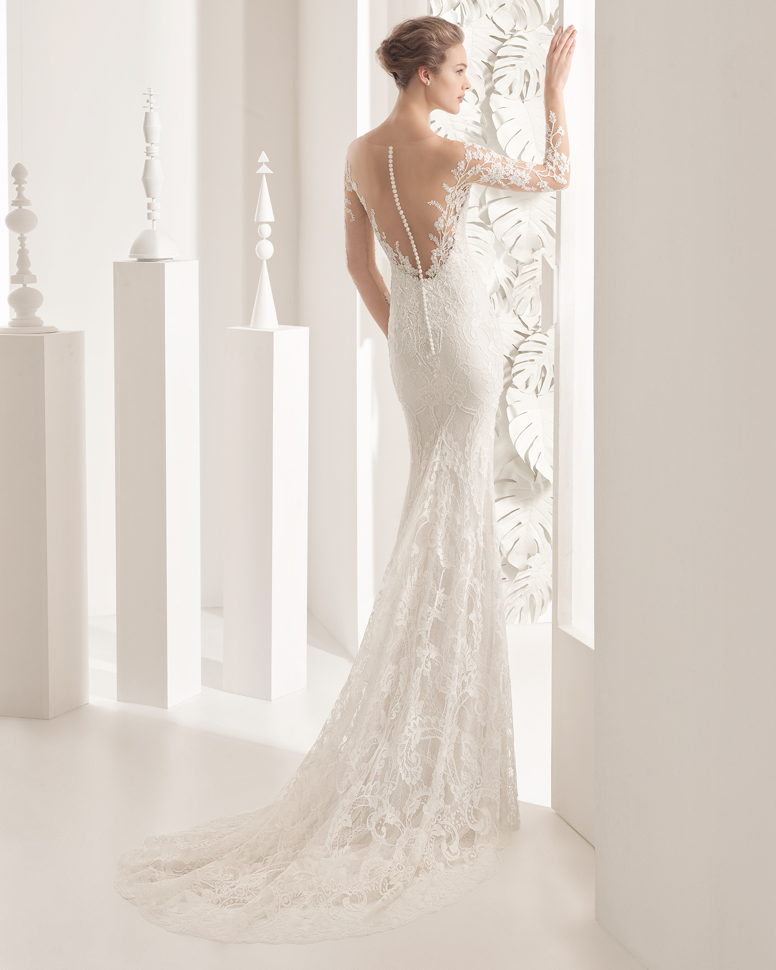 Un precioso ejemplo para empezar es este vestido de la firma Rosa Clará, se trata del modelo Martina, un elegante vestido de corte sirena en estilo boho, con aplicaciones de guipur cosidas a mano y confeccionado en crepe con la espalda escotada.