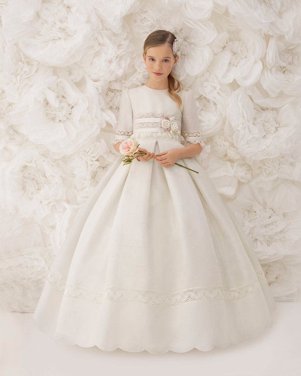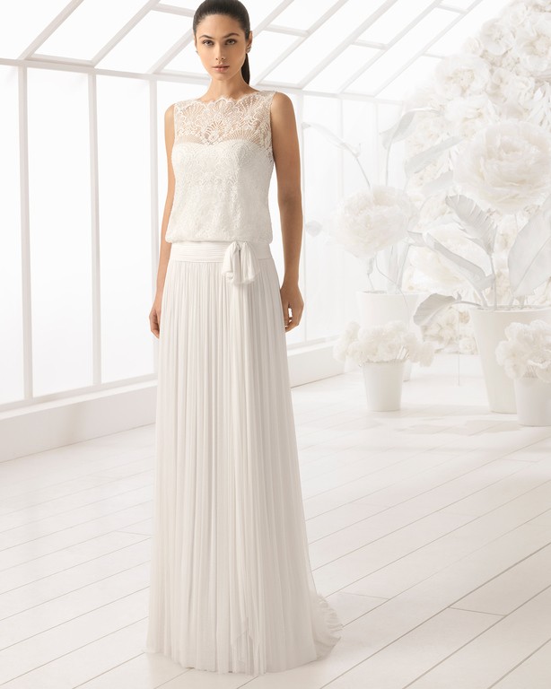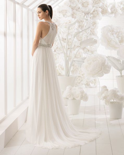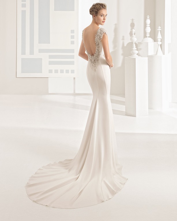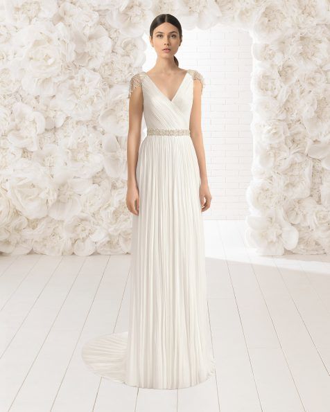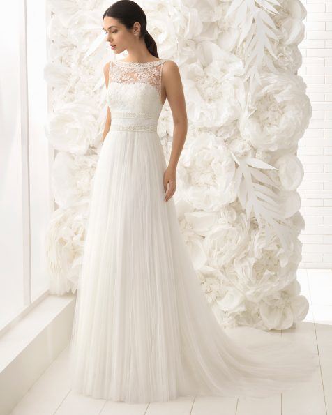 También dentro de la línea “Soft” de Rosa Clará podemos elegir elegir vestidos que cuentan con un diseño entallado, recreando modelos de vestidos de antaño o los que son de efecto “vintage”. Es el caso del modelo “Lucena” que podéis ver a continuación y que seguro, os va a encantar.