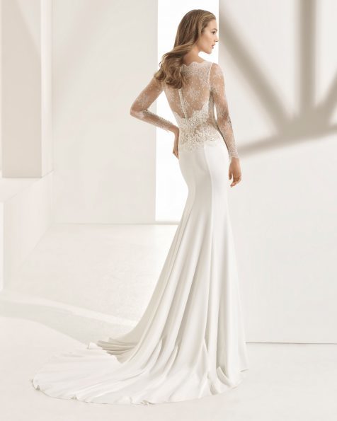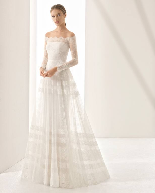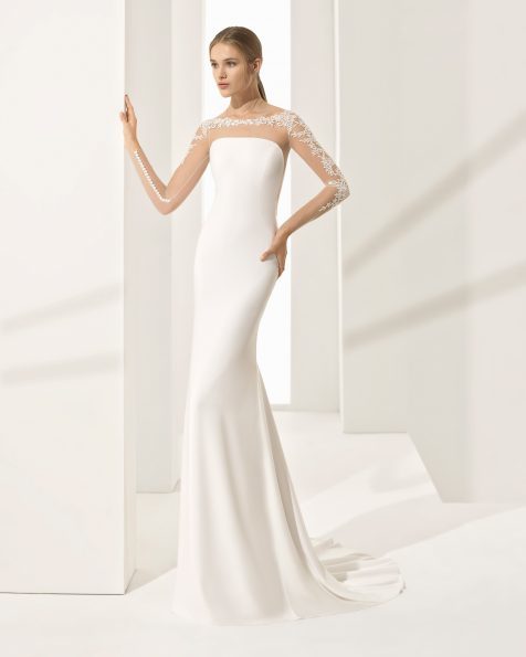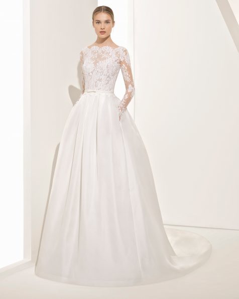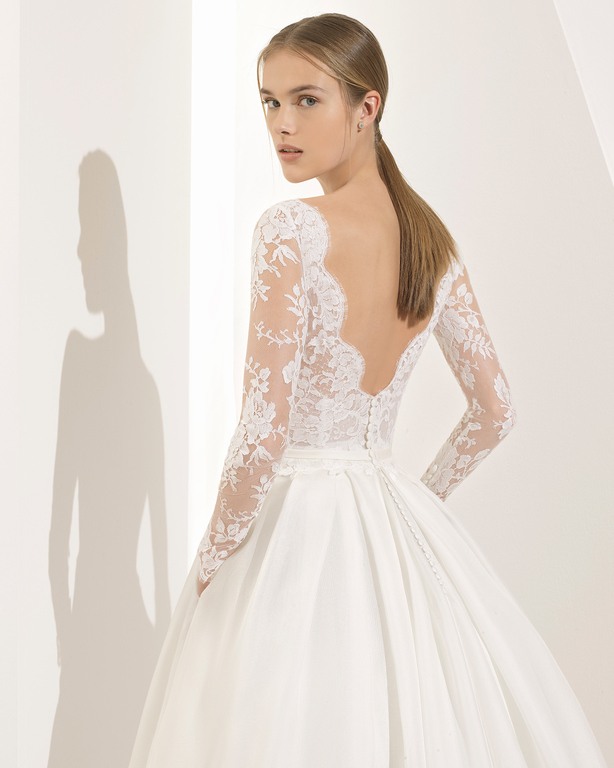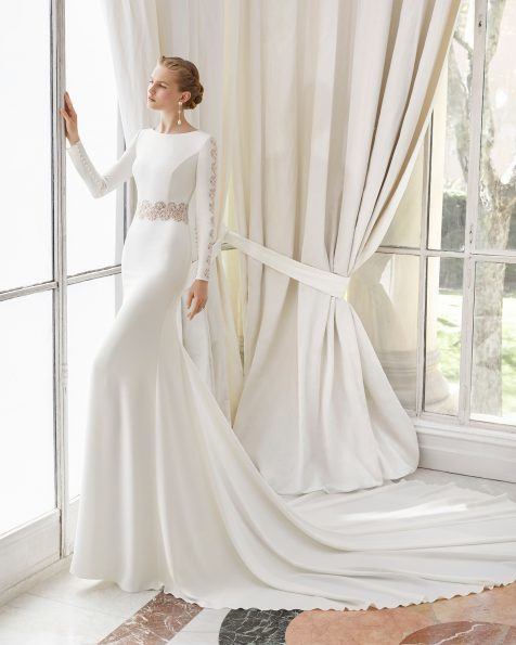 También encontramos como no, las últimas tendencias dentro de los vestidos de novia Rosa Clará para la línea “Couture”, es el caso de los modelos de vestidos de novia de manga larga, ideales para una boda de tarde tal y como es el caso del modelo llamado “Paula” que podéis ver a continuación.